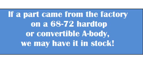 We have a large ever-changing inventory of common and hard-to-find body, interior, mechanical, trim and correct option parts for 68-72 A-Bodies